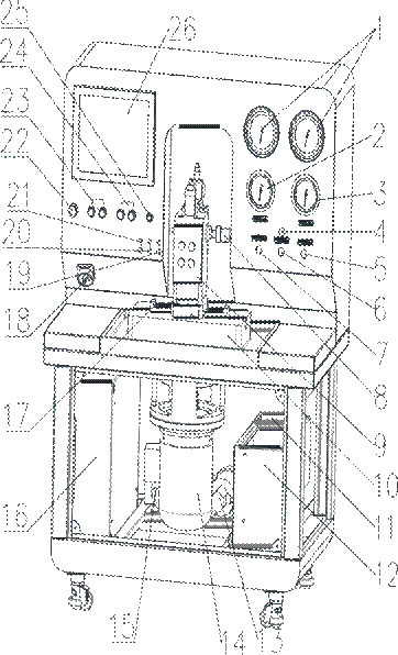 9、測試完成之后,把抽油管插入加油口內(nèi),啟動抽油泵組,把調(diào)速器內(nèi)實驗油抽回到測試油箱;